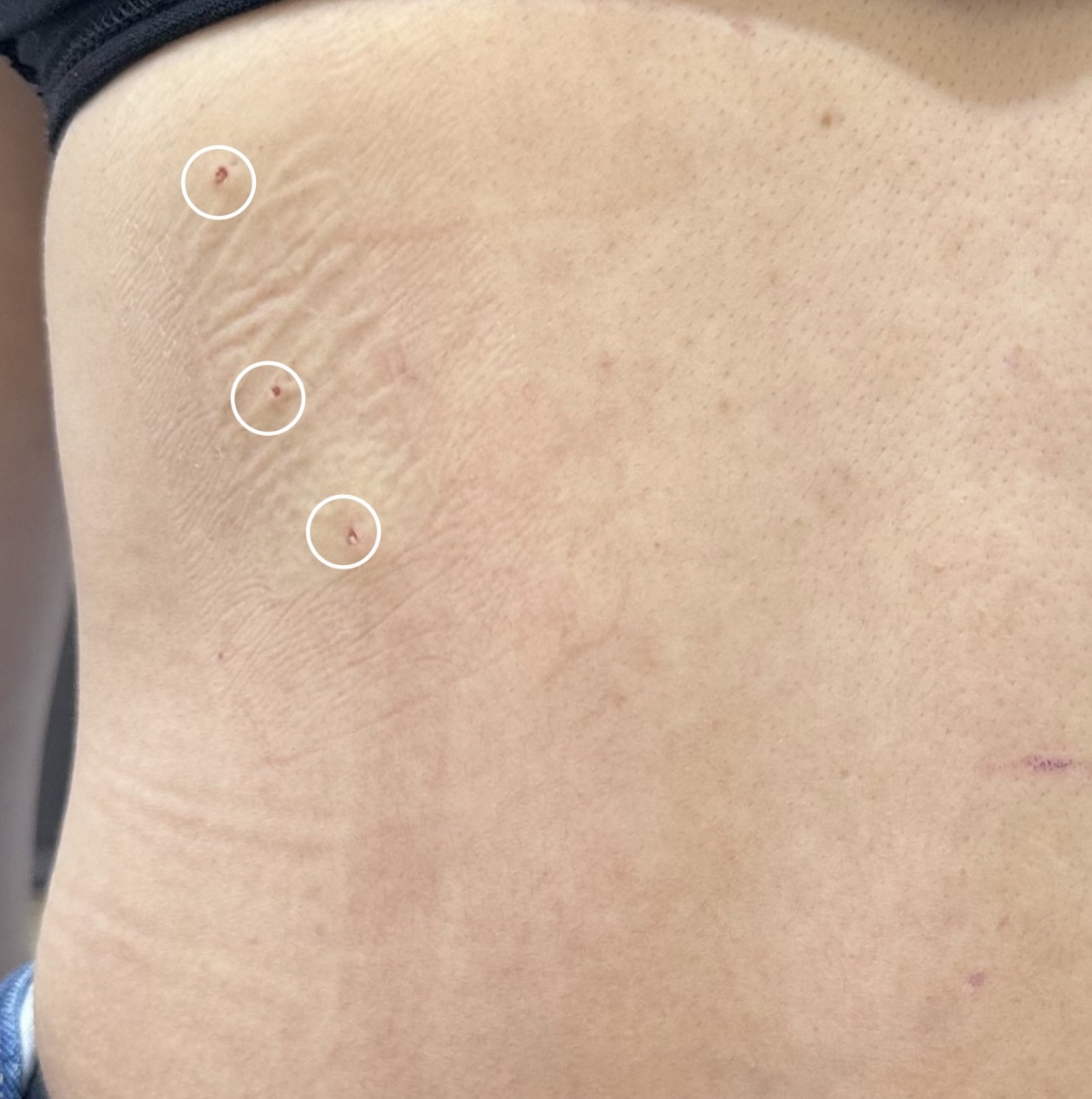 これに対しRibXcarは、皮膚にハリ孔程度の穴をあけ、特殊な針状の機械で肋骨に穴をあけて折り曲げ、術後はコルセットで固定することでくびれを作る(肋骨をリモデリングする)という、従来法に比べ傷跡が目立ちにくく、より低侵襲な手術になります。